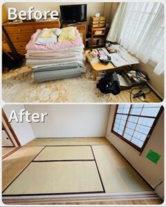 お母様が札幌市内の施設に入ることになり、お住まいになられていた江別市の住居内全ての家財道具の整理と搬出のご依頼でした。